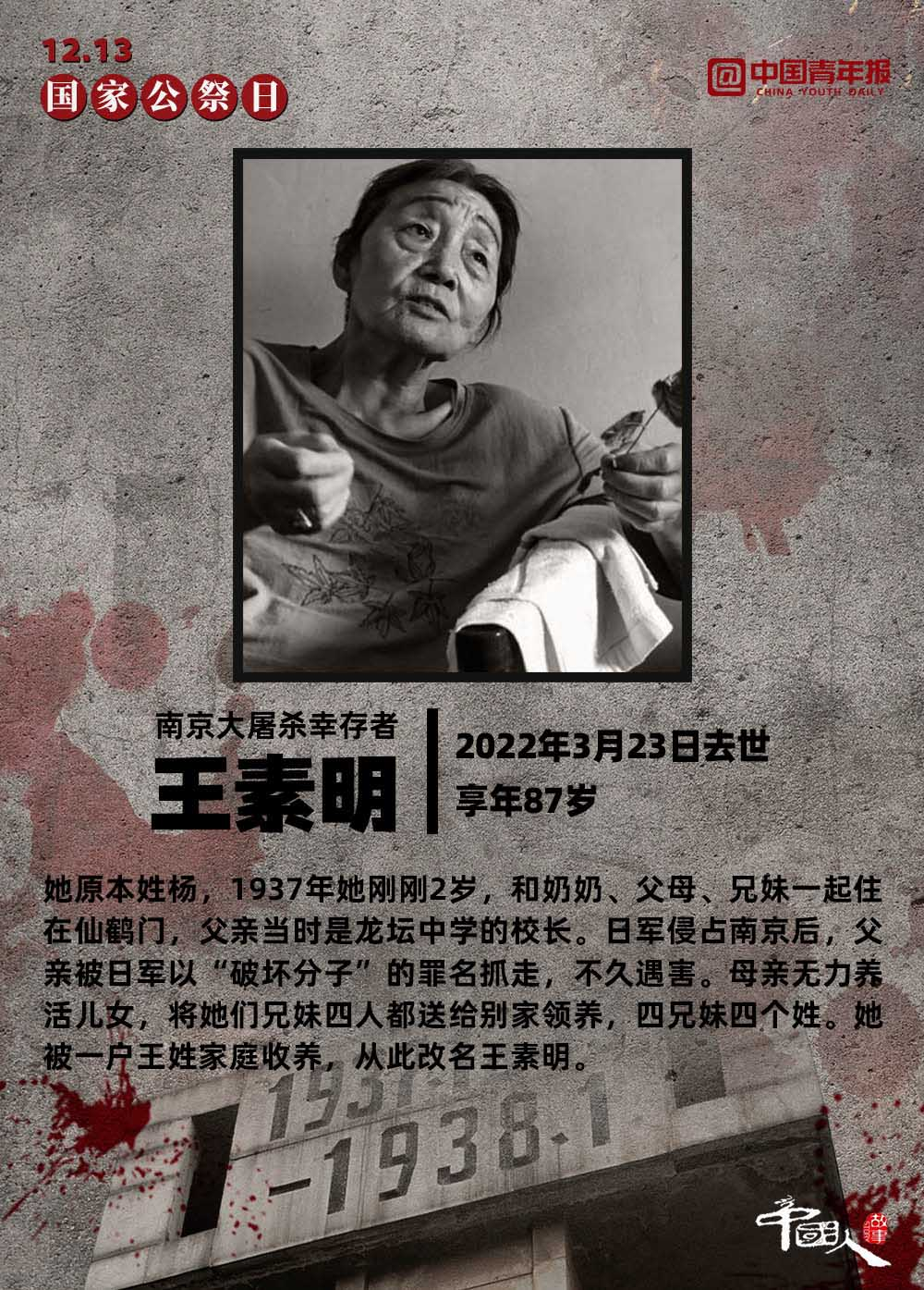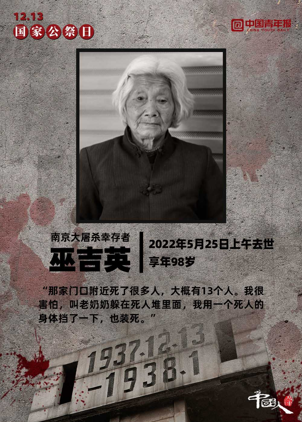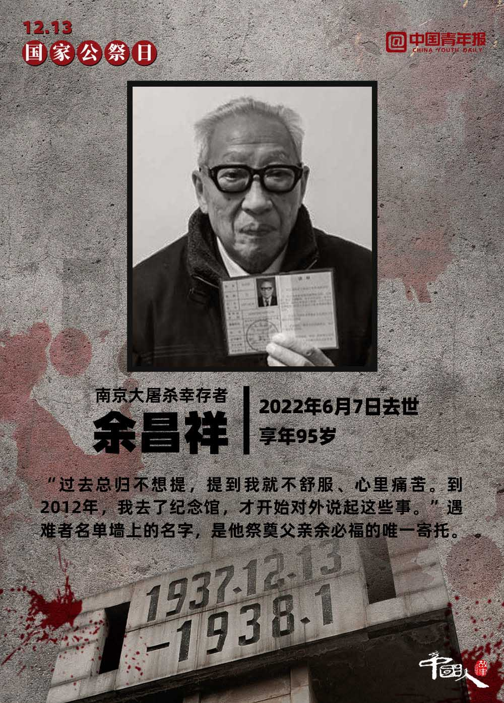 12月13日,是第九個南京大屠殺死難者國家公祭日 。截至2022年12月12日,南京侵華日軍受害者援助協(xié)會登記在冊在世的幸存者僅剩54位。一位南京大屠殺幸存者說:“85年了,我現(xiàn)在的心愿是孩子們都能記住這段歷史?!弊屛覀儗⑦@段歷史銘刻在內(nèi)心深處,讓“記住”化作一種責(zé)任,伴著我們堅(jiān)定前行。