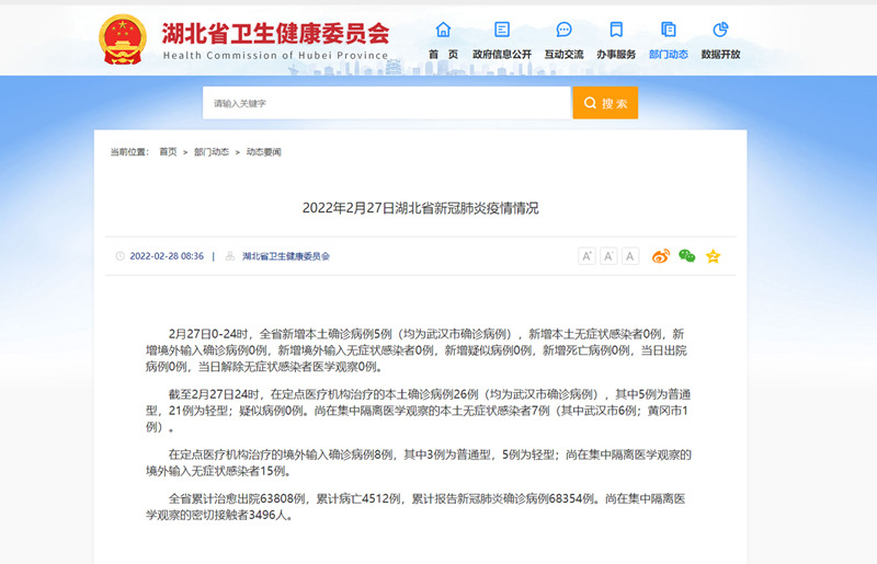 湖北省衛(wèi)生健康委員會(huì)網(wǎng)頁(yè)截圖。