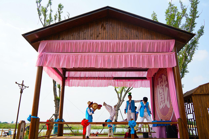 景區(qū)內一處戲臺上正進行表演。李歡攝