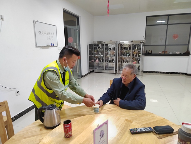 臨別之際,班長再三叮囑,要給老人帶上手牌、衣服上標(biāo)注信息,避免再次發(fā)生類似情況。