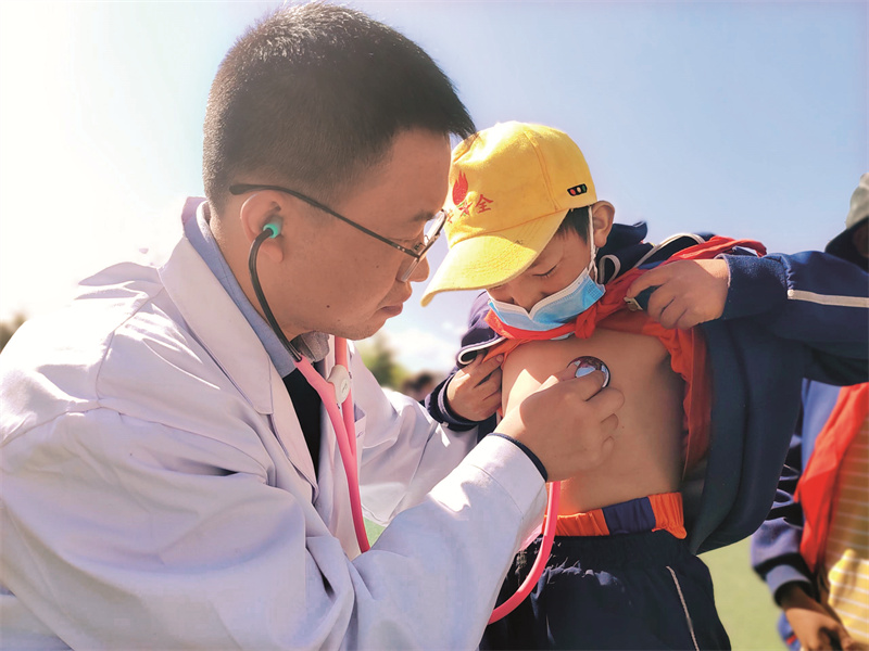 2022年4月,南京醫(yī)科大學(xué)第二附屬醫(yī)院“心佑”工程團(tuán)隊的醫(yī)生在西藏自治區(qū)拉薩市曲水縣小學(xué)為學(xué)生做先天性心臟病篩查。拉姆 攝