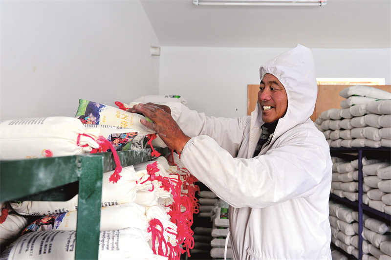 如今,在西德稞原地食品有限公司的帶動下,久美拉姆家種的青稞根本不愁銷路。2021年,公司以每畝170斤、一斤2.5元的價格對全村青稞進行統(tǒng)一收購,每斤收購價高于市場價0.5元。同時,在村委會的統(tǒng)一安排下,久美拉姆每個月會去公司上幾天班,除了工資外,年底還能享受到公司的分紅?!肮久磕贻喠靼才糯迕袂皝韯展ぃ塾嫲才糯迕?35人次,實現(xiàn)勞務創(chuàng)收33萬元,人均增收1000元左右?!钡┰鲱D珠介紹,在公司帶動下,普蘭全縣推廣種植白青稞3100余畝,參與群眾達200多戶,實現(xiàn)群眾增收100萬元,脫貧戶實現(xiàn)種植收入30多萬元。近年來,隨著西德稞原地食品有限公司不斷發(fā)展壯大,西德村群眾的致富途徑日益寬廣,步入了種植增收、務工增收、分紅增收等多種增收方式鋪就的康莊大道,形成了以產(chǎn)業(yè)為支撐的長效增收機制。