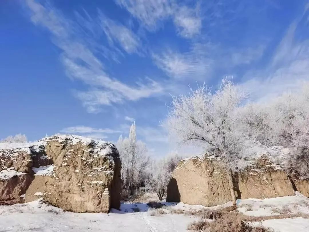 “忽如一夜春風(fēng)來,千樹萬樹梨花開?!边@是唐朝邊塞詩人岑參一千多年前在北庭所見的北國風(fēng)光。大雪時(shí)節(jié),新疆北部早已銀裝素裹,位于新疆昌吉回族自治州吉木薩爾縣的北庭故城國家考古遺址公園,被皚皚白雪覆蓋。