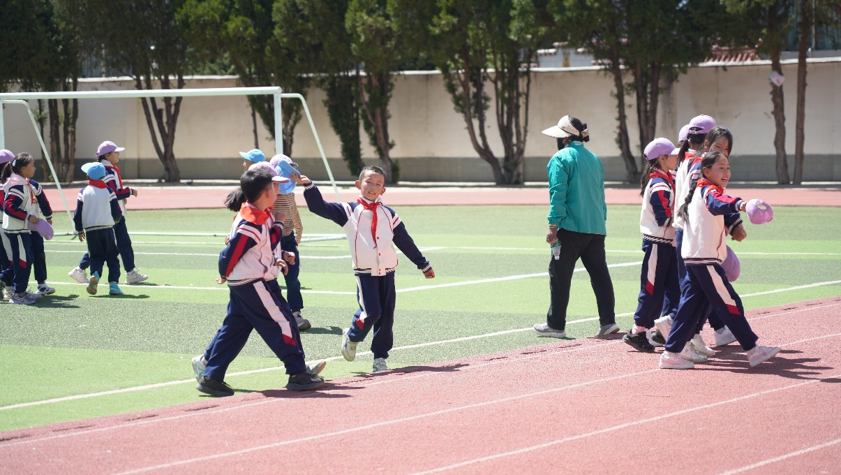 “利利老師,我們來(lái)玩老鷹抓小雞。”操場(chǎng)上,剛剛整隊(duì)完,正自由活動(dòng)的學(xué)生喊學(xué)校的湖南援藏教師、體育學(xué)科教研組組長(zhǎng)戴勝利。