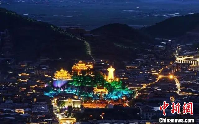 圖為夜里的迪慶香格里拉獨克宗古城璀璨奪目?!『蜁匝?攝