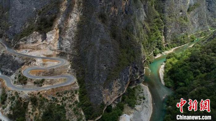 圖為在迪慶高山峽谷間修筑的公路。 中共香格里拉市委宣傳部供圖