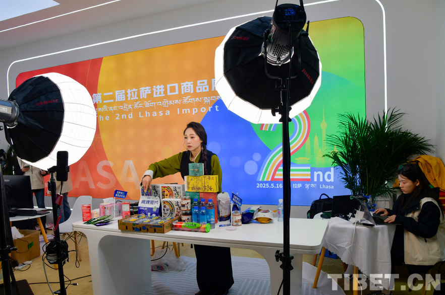圖為電商主播在2025第二屆拉薩進口商品展覽會 攝影:趙振宇