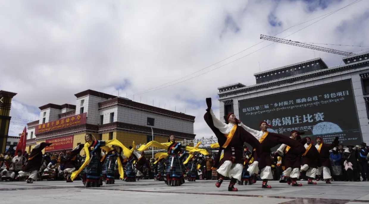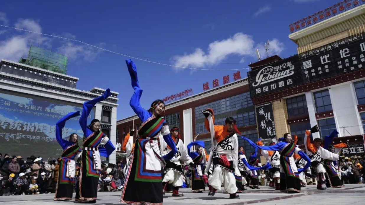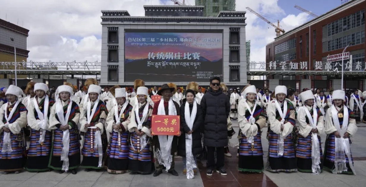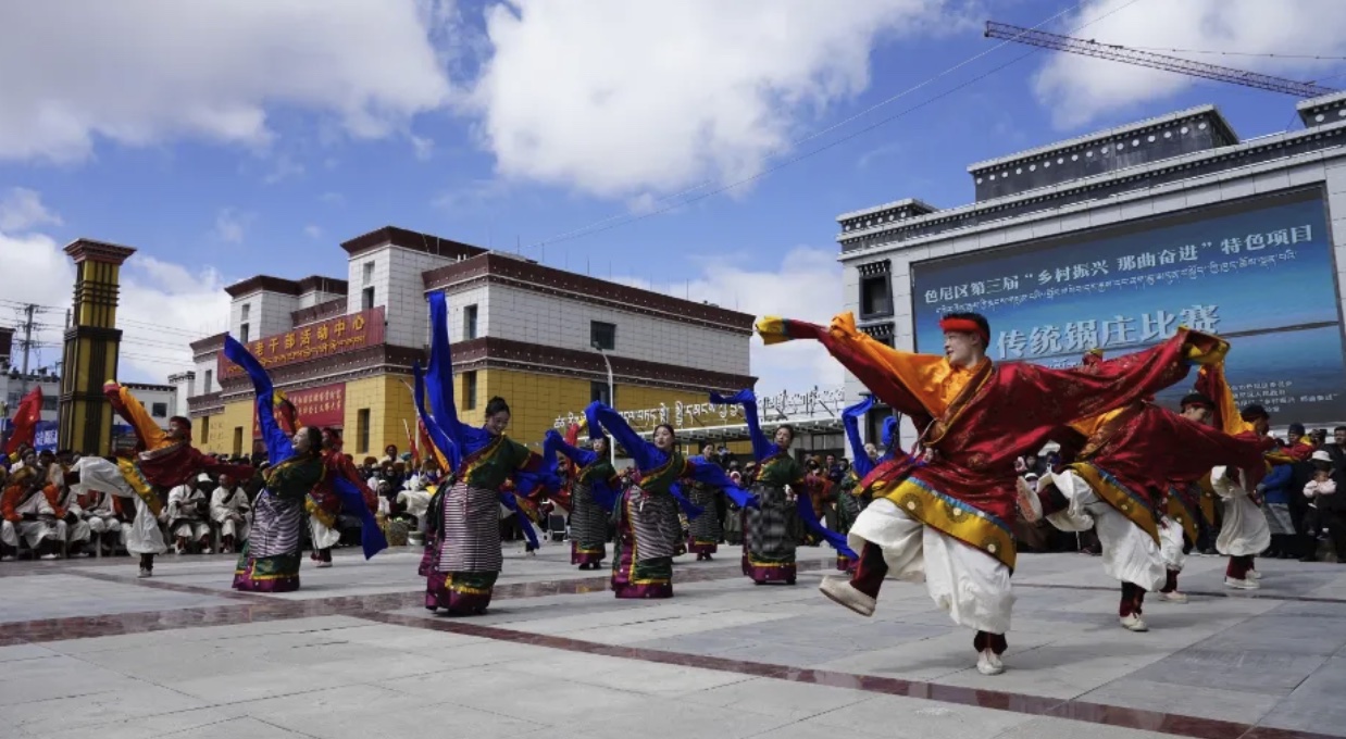 為進(jìn)一步傳承和發(fā)揚(yáng)民族文化,豐富牧民群眾的業(yè)余生活,4月26日,色尼區(qū)在那曲大廈廣場(chǎng)隆重舉行了第三屆“鄉(xiāng)村振興 那曲奮進(jìn)”特色項(xiàng)目傳統(tǒng)鍋莊比賽。此次比賽吸引了來(lái)自各鄉(xiāng)鎮(zhèn)的13支代表隊(duì)參與,他們身著盛裝,舞姿翩翩,展示了色尼區(qū)獨(dú)特的民族風(fēng)情和鍋莊文化的魅力。