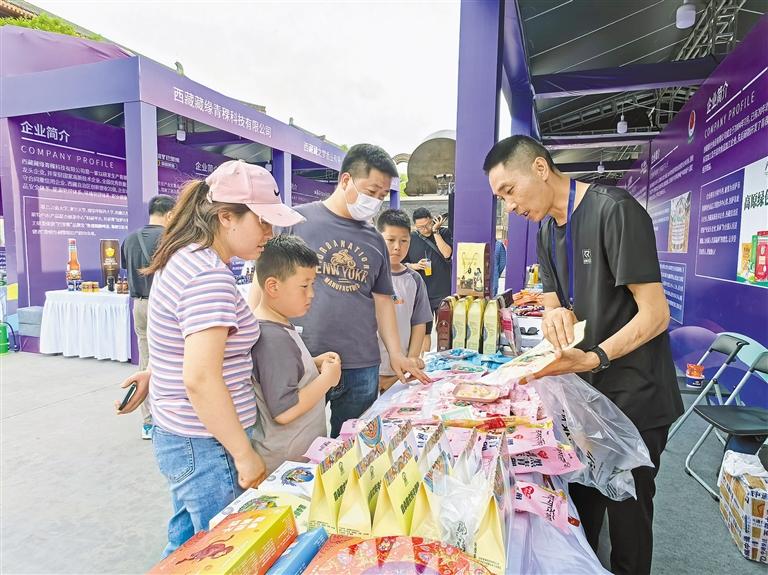 拉薩更桑商貿(mào)有限公司展臺(tái)上的藏紅花、牦牛奶干吸引著西安市民王先生一家的目光。“藏紅花可以活血化瘀、涼血解毒,還可以解郁安神和增強(qiáng)免疫力……”聽(tīng)著導(dǎo)購(gòu)員的介紹,王先生購(gòu)買(mǎi)了幾十克藏紅花和十多包各種口味的牦牛奶干,“帶回去給親戚朋友,讓大家都嘗嘗西藏的美食。”