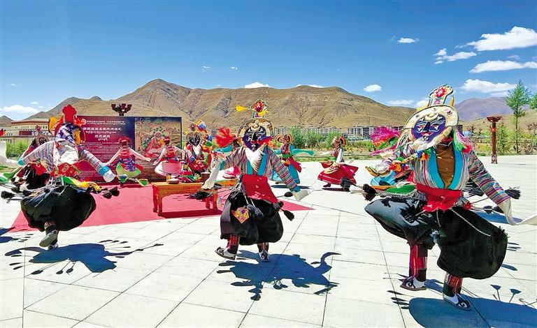 圖為演員在日喀則市“文化與自然遺產(chǎn)日”活動現(xiàn)場表演迥巴藏戲。記者 扎西頓珠 旦增嘎瓦 楊子彥 攝