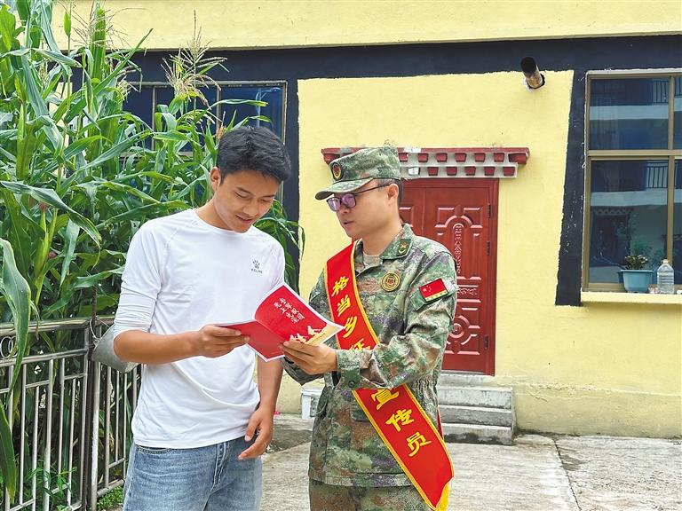圖為為積極響應(yīng)國家號(hào)召,扎實(shí)做好征兵工作,墨脫縣格當(dāng)鄉(xiāng)人武部走村入戶向群眾宣傳征兵相關(guān)政策,不斷激發(fā)適齡青年參軍入伍的熱情。這是格當(dāng)鄉(xiāng)人武部部長陳杰到群眾家中進(jìn)行征兵宣傳。記者 王敏 通訊員 郎玲 攝