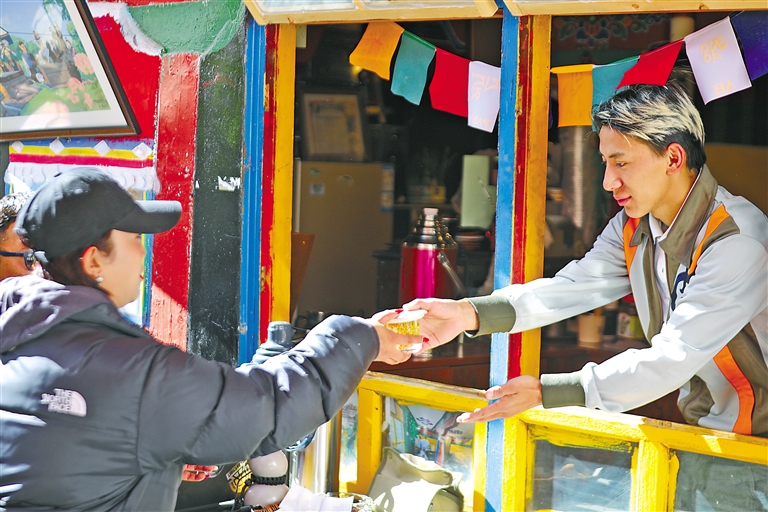 隨著對旦增特覺了解漸深,“擔當”二字如烙印般刻在記者心間。在貢桑孜大院居民眼中,旦增特覺堪稱楷模,咖啡館的客人亦是對他贊不絕口。退休市民白珍笑容滿面地說道:“我們姐妹四個是網(wǎng)上結(jié)識這孩子的,上進又努力,瞧著他一路打拼,心里頭滿是欣慰。這不,過幾天要去外地休養(yǎng),特意先來跟他道個別,盼著他這生意越來越紅火?!?/p>