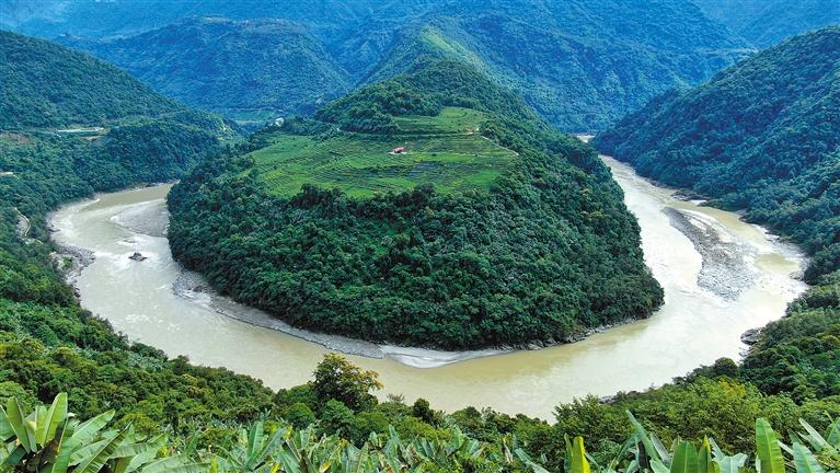 其實(shí),果果塘大拐彎里還藏著一枚新年大型“彩蛋”——這里又稱(chēng)作雅魯藏布江蛇形大拐彎。由雪域高原的百川匯流而成的雅魯藏布江,在果果拉山附近繞了一個(gè)大彎。站在德興鄉(xiāng)的觀景臺(tái)上眺望,人們便會(huì)發(fā)現(xiàn)這里宛如一條碧青的長(zhǎng)蛇盤(pán)踞在蒼翠茂盛的雨林之間,蔚為壯觀。