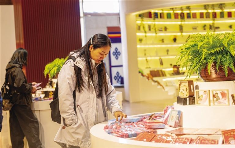 消費(fèi)者在西藏博物館選購(gòu)心儀的文創(chuàng)產(chǎn)品。
