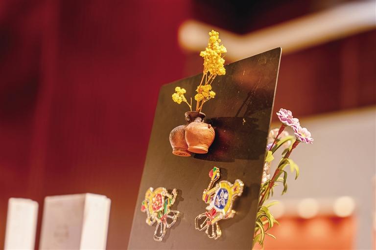 踏入文創(chuàng)展示區(qū),猶如穿越歷史長(zhǎng)廊。《文成公主迎親圖》刺繡系列重現(xiàn)漢藏和親盛景,華美紋飾在紗幔上靈動(dòng)舒展;鎮(zhèn)館之寶朱墨彩繪雙體陶罐化身實(shí)用藝術(shù)品,原始陶紋與插花功能巧妙結(jié)合,成為游客競(jìng)相收藏的“微型博物館”。
