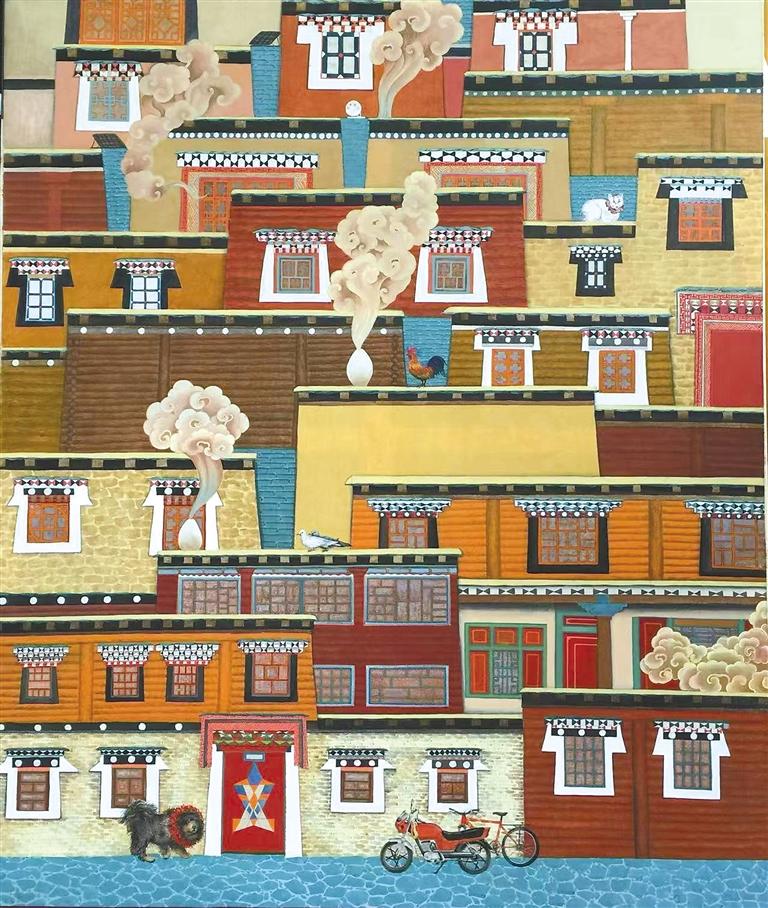 作為一名畫家,拉巴次仁深知,創(chuàng)作源泉在于對(duì)生活的深刻理解和體驗(yàn)。在他的作品中不僅展現(xiàn)了西藏的自然風(fēng)光和人文風(fēng)情,還傳遞出一種堅(jiān)定而快樂的繪畫態(tài)度,讓人感受到藝術(shù)的魅力和生活的美好。他的創(chuàng)作實(shí)踐和藝術(shù)成就,為西藏繪畫藝術(shù)的發(fā)展貢獻(xiàn)了獨(dú)特的力量。
