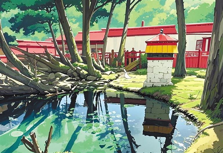 三個(gè)放學(xué)歸來的孩子蹲在石板邊,用泉水沖洗沾滿泥土的手,水珠順著手指滴落時(shí),忽然有斑頭雁群掠過泉面上空。他們屏息凝望的瞬間,宮崎駿動(dòng)畫中常見的“萬物有”氣息,正從濕地里蒸騰的水霧中悄然漫出。