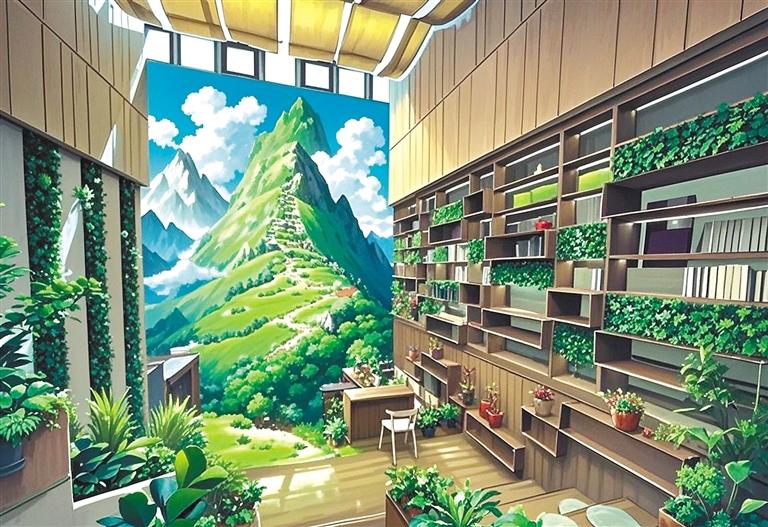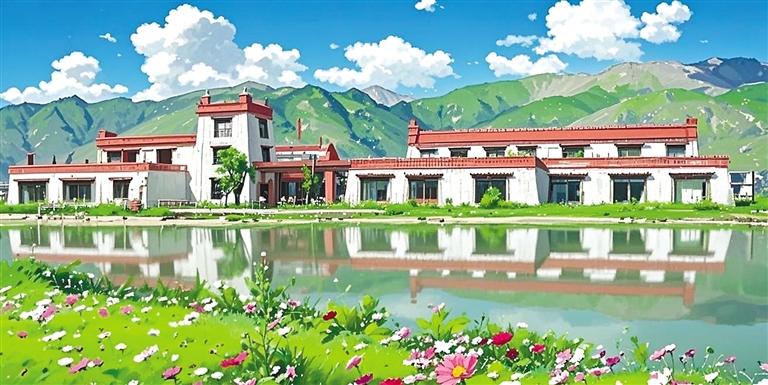 “我就是想以動(dòng)畫風(fēng)格給大家展示不一樣的堆龍?!钡┰隼氛f。只見她又將照片導(dǎo)入AI圖片生成軟件內(nèi),AI自動(dòng)識(shí)別圖像元素——經(jīng)幡的布料特性、水流的物理參數(shù)、建筑材質(zhì)的反光數(shù)據(jù)。輕點(diǎn)“生成”按鈕,1分23秒后,一張動(dòng)畫風(fēng)格的Shadada CoffeeX新型公共文化空間的圖片便呈現(xiàn)在眼前。重點(diǎn)不是技術(shù),是審美把關(guān),旦增拉姆指著屏幕上的失敗案例:“AI把青稞田處理成糖果色卡通,把圖書館渲染成賽博朋克風(fēng)格。我每天要調(diào)整無數(shù)次參數(shù),就像教AI理解什么是藏地美學(xué)。”她用最現(xiàn)代化的數(shù)字工具,“描繪”著堆龍德慶區(qū)新的光影詩篇。
