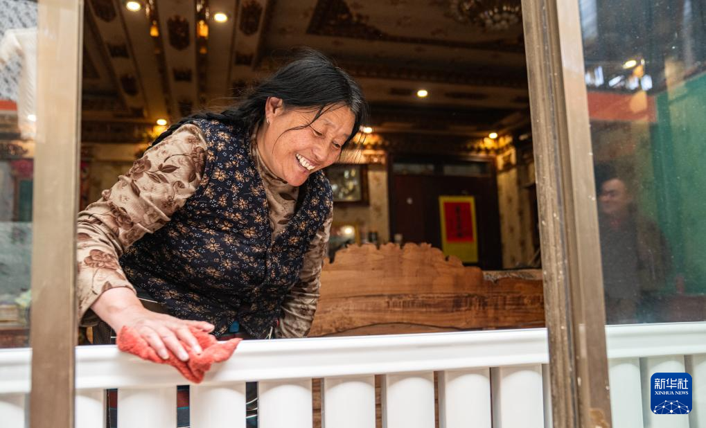 4月26日,那曲市團(tuán)結(jié)小區(qū)居民在擦拭暖氣片。新華社記者 丁增尼達(dá) 攝