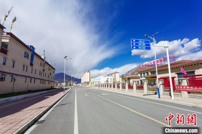 紅頂白墻的樓房整齊排列,柏油馬路平坦寬闊,商鋪招牌林立,文化廣場(chǎng)上健身器材锃亮如新……這是西藏自治區(qū)拉薩市堆龍德慶區(qū)乃瓊街道色瑪社區(qū)如今的面貌,很難想象,在2006年青藏鐵路格拉段(格爾木至拉薩)通車前,這里曾是塵土飛揚(yáng)的村落。