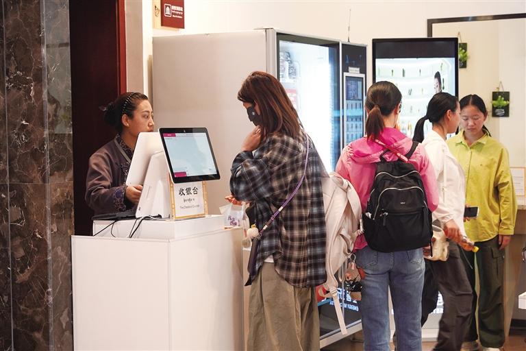 游客正在排隊(duì)結(jié)賬。圖/記者 鄭常容