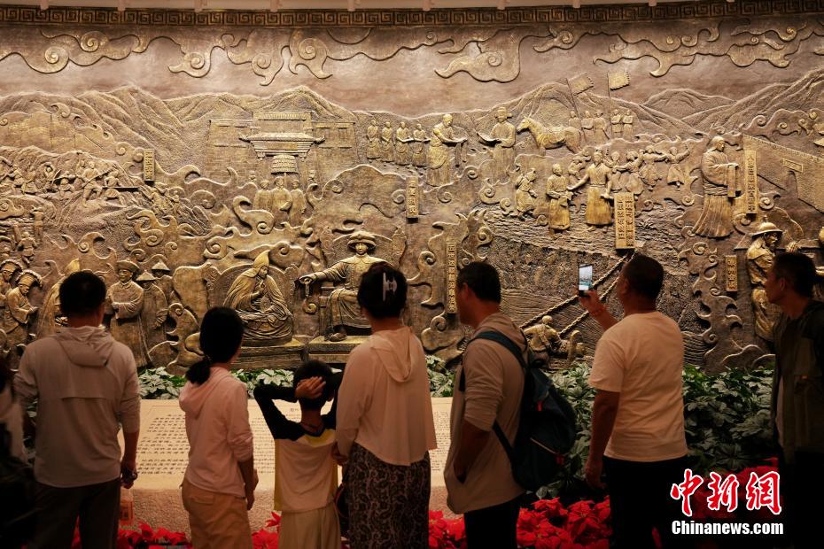 7月15日,在位于西藏拉薩的西藏博物館,觀眾參觀西藏歷史畫卷浮雕。據(jù)了解,西藏博物館設(shè)有基本陳列《雪域長歌—西藏歷史文化展》《離太陽最近的人—西藏民俗文化展》,充分展示西藏地區(qū)歷史發(fā)展進(jìn)程與文化面貌。