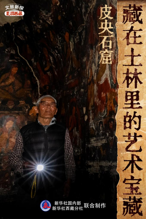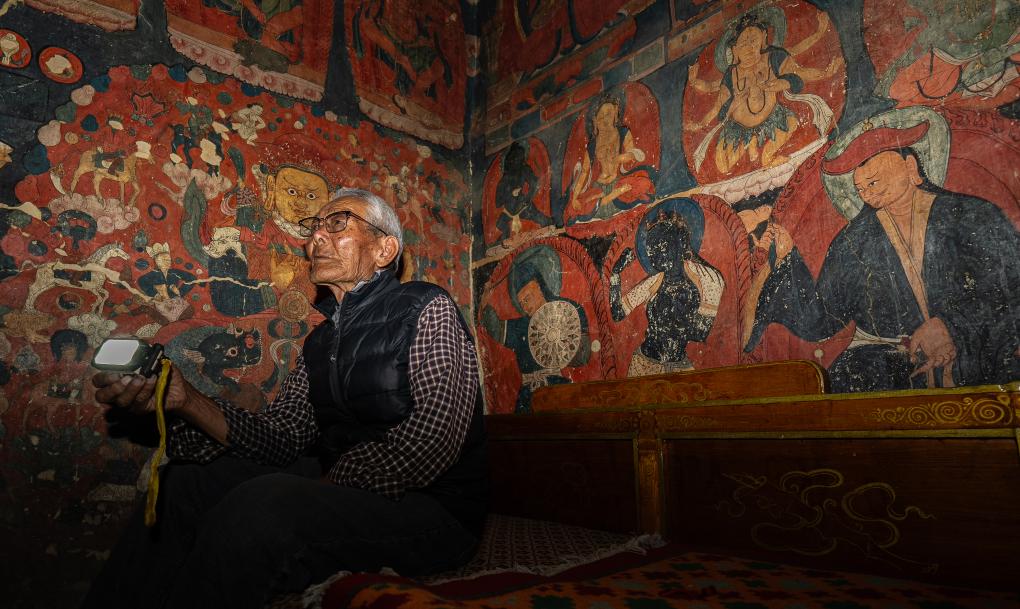 “這些壁畫,是1000多年前畫上去的?!?7歲的東嘎村村民仁增旺扎拄著拐杖,向游客耐心講解。盡管已從文保員的崗位上退休,但20多年來守護石窟的習慣早已刻進了生活。他的身影仍不時出現(xiàn)在石窟間,像往常一樣,講述這些千年壁畫背后的故事。