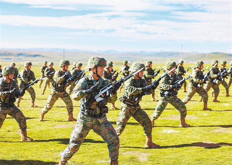那曲市2025年度“軍事日”活動(dòng)日前在那曲軍分區(qū)某訓(xùn)練場(chǎng)舉行。這是官兵們?cè)谶M(jìn)行軍事科目演示。記者 萬(wàn)靖 攝