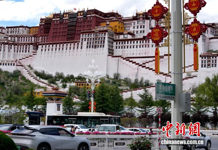 2025年8月19日,隨著西藏自治區(qū)成立60周年慶?;顒优R近,拉薩街頭洋溢著一派祥和歡慶的氣氛。中新社記者 李林 攝