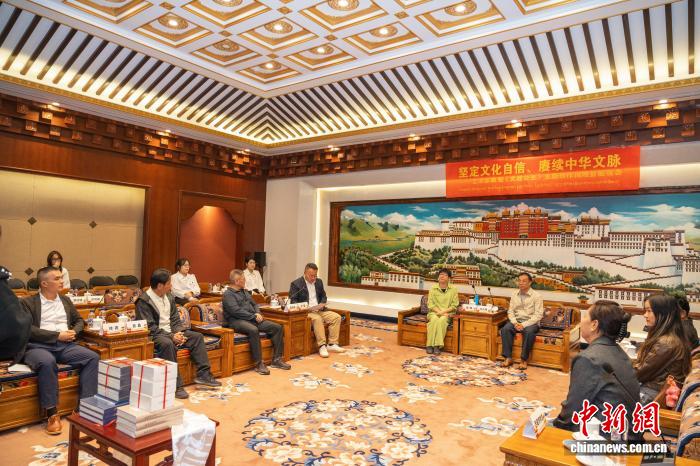 圖為8月27日,中國華夏文化遺產基金會向西藏博物館捐贈《文成公主》連環(huán)畫等作品現(xiàn)場。(主辦方供圖)