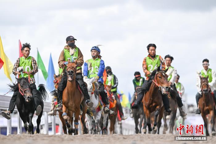 9月6日,西藏自治區(qū)那曲市恰青賽馬節(jié)進入第二天,格薩爾賽馬場賽事精彩不斷。場內(nèi),1.38米以下小馬展開10000米速跑、10000米走馬、12000米走馬決賽,1.38米以上1.45米以下大馬角逐10000米速跑決賽。為觀眾帶來速度與耐力的草原盛宴,盡顯藏北草原賽馬文化的獨特魅力。圖為1.38米以上1.45米以下大馬速度賽比賽現(xiàn)場。中新社記者 貢嘎來松 攝