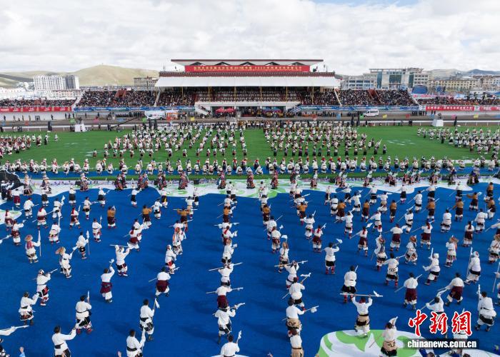 圖為那曲恰青賽馬節(jié)開幕式上的文藝演出。貢嘎來松 攝