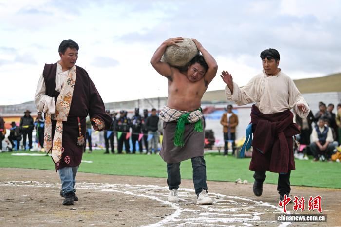 圖為那曲恰青賽馬節(jié)抱石頭比賽現(xiàn)場。貢嘎來松 攝