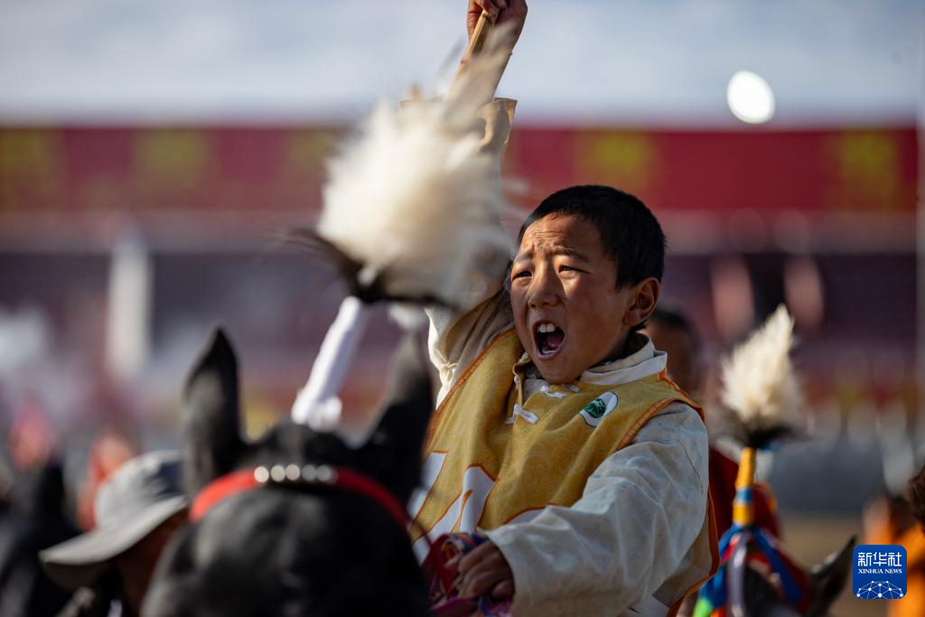 9月7日,騎手在傳統(tǒng)大跑項(xiàng)目前的傳統(tǒng)煨?;顒?dòng)中祈福。新華社記者 姜帆 攝