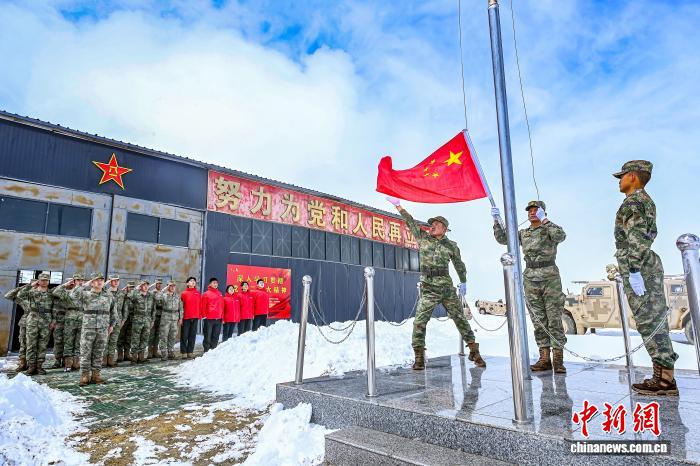 “大國邊疆”育人工程實(shí)踐團(tuán)成員赴西藏日喀則市開展思政調(diào)研,走進(jìn)“高原戍邊模范營”哨所,與官兵共同舉行升旗儀式。(中國人民大學(xué)供圖)