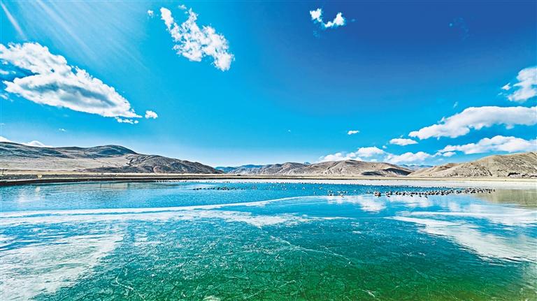 隨著氣溫回升,位于西藏阿里地區(qū)普蘭縣境內(nèi)的拉昂錯湖面冰層開始消融,形成大小不一的冰塊,呈現(xiàn)出獨特的開湖景觀。