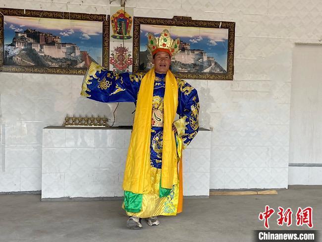 圖為外木村“南木特”藏戲演出隊成員出演智美更登?!∷巫雨?攝