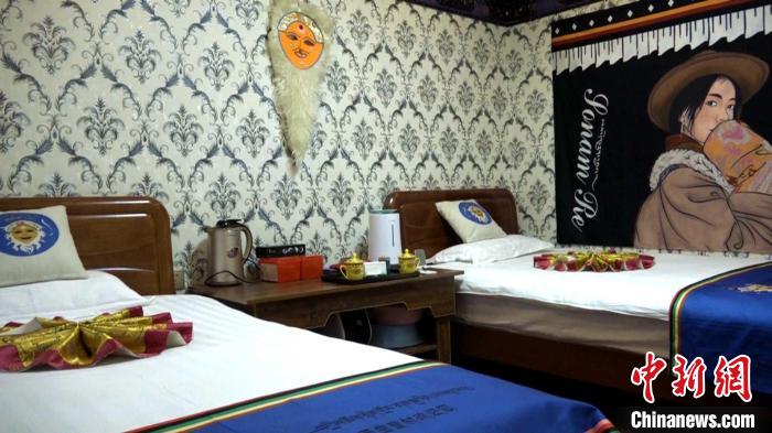圖為充滿藏戲藝術氛圍的民宿一角。貢桑拉姆 攝