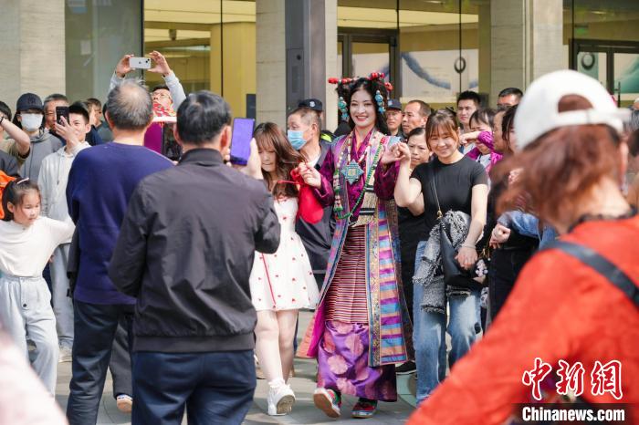 此次文旅推廣活動中,主辦方在西子湖畔舉辦了一場藏裝時裝秀,十多位拉薩市當雄縣藝術(shù)團的演職人員身著各式藏裝獻上文藝表演、時裝走秀,吸引廣大游客駐足參與互動。