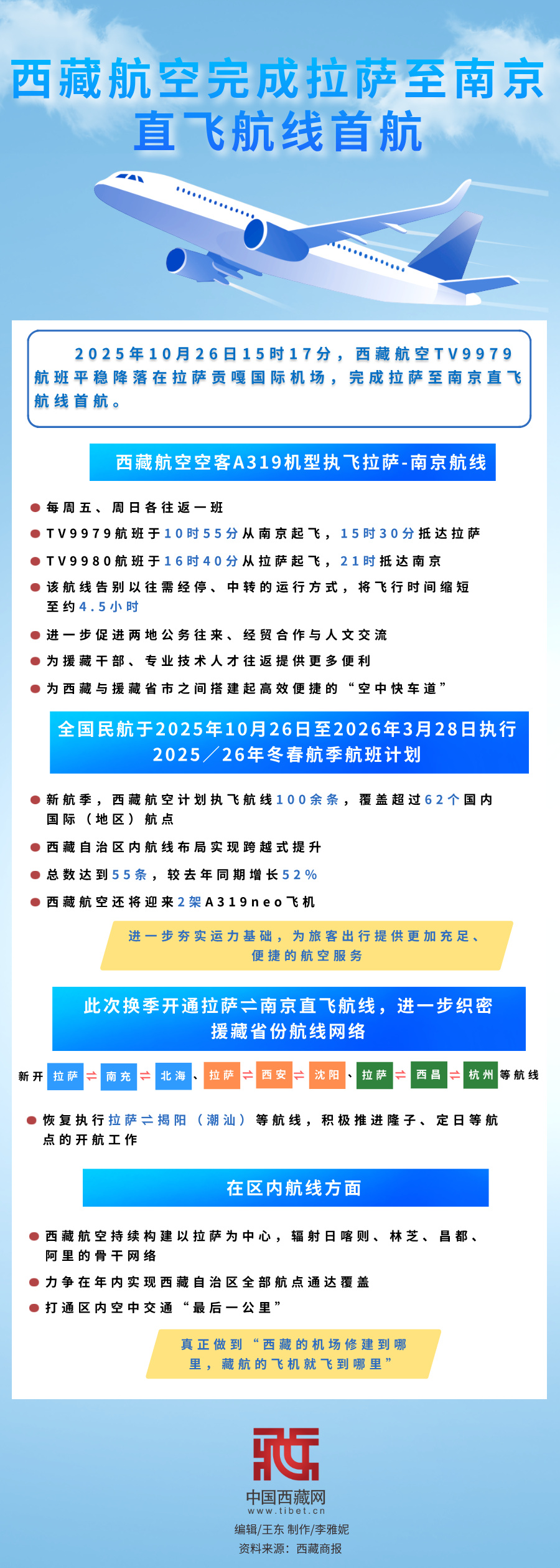 海報|西藏航空完成拉薩至南京直飛航線首航