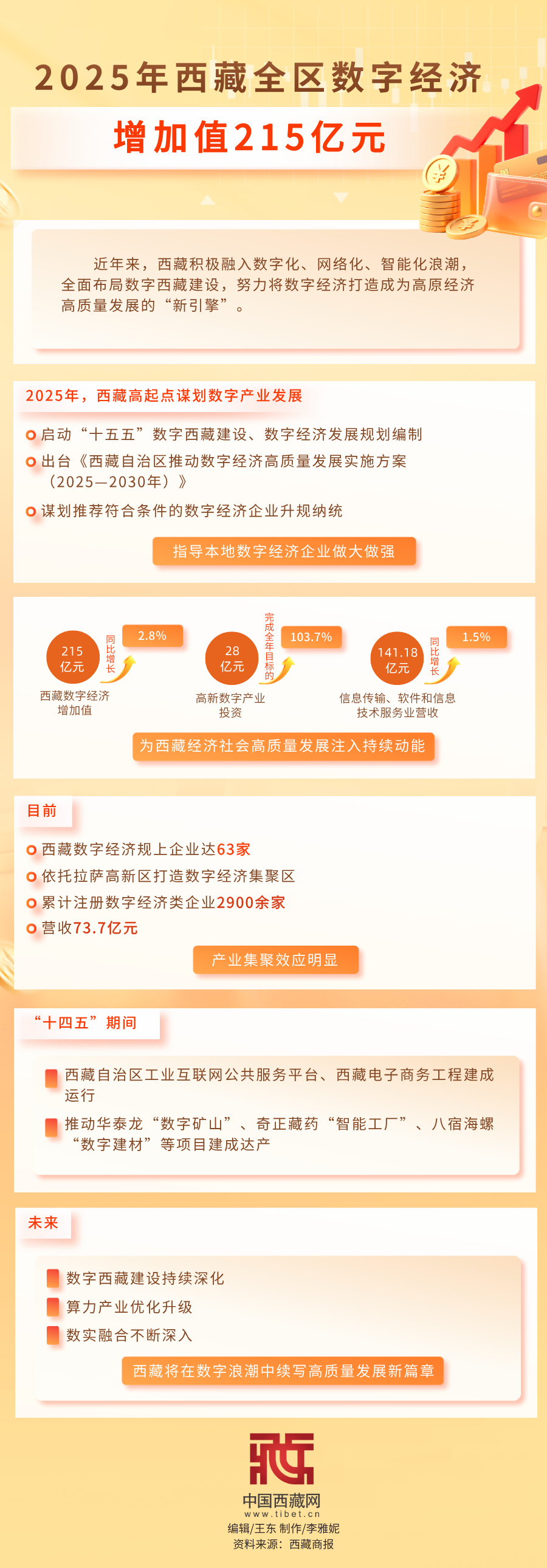 海報|2025年西藏全區(qū)數(shù)字經濟增加值215億元