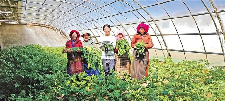 2017年,雙湖縣投建了11座蔬菜大棚。經(jīng)過當(dāng)?shù)馗刹亢湍撩駛兣Ω藕托量嘣囼?yàn),現(xiàn)在種植的蔬菜瓜果年產(chǎn)量可達(dá)4噸,每年給當(dāng)?shù)啬撩袢罕姲l(fā)放蔬菜分紅和現(xiàn)金分紅共計(jì)12萬元左右,857人從中受益。