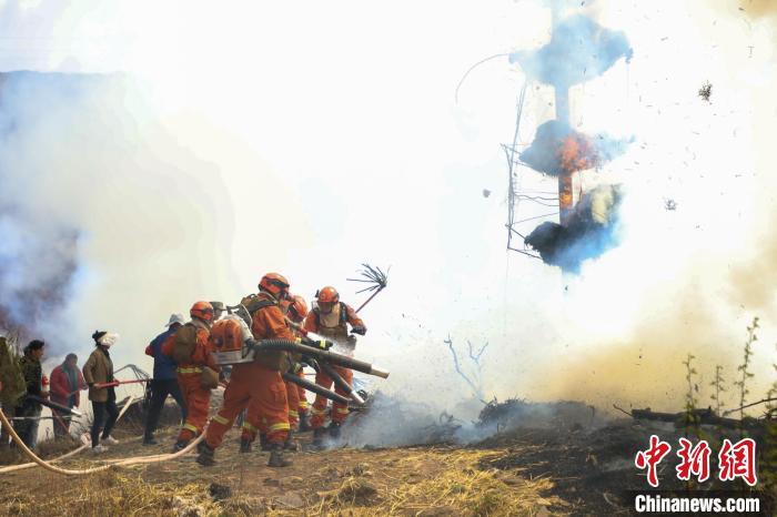 演練現(xiàn)場(chǎng),森林消防進(jìn)行滅火。昌都市森林消防支隊(duì) 供圖