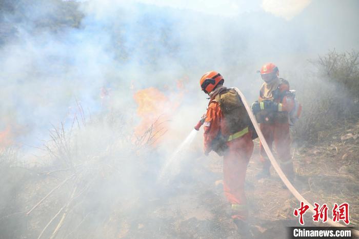 “報(bào)告聯(lián)指,卡若區(qū)俄洛鎮(zhèn)俄洛村東南方向約2公里處發(fā)生森林火災(zāi),大火借風(fēng)勢(shì)迅速蔓延,過火面積約10畝。”接到報(bào)警后,聯(lián)合指揮部立即組織森林消防、消防救援、卡若區(qū)就近護(hù)林員等共計(jì)140余人,按照任務(wù)區(qū)域劃分戰(zhàn)斗小組,攜帶各類滅火裝備迅速進(jìn)入戰(zhàn)斗。結(jié)合現(xiàn)場(chǎng)火勢(shì),各戰(zhàn)斗小組采用水泵分隊(duì)以水滅火、消防車增濕作業(yè)、常規(guī)分隊(duì)清理余火相結(jié)合的方式實(shí)施滅火。