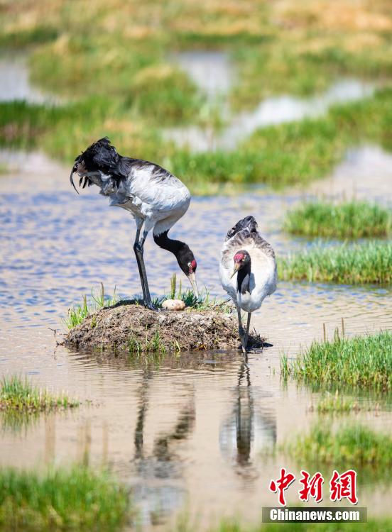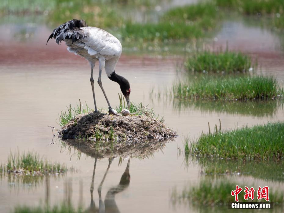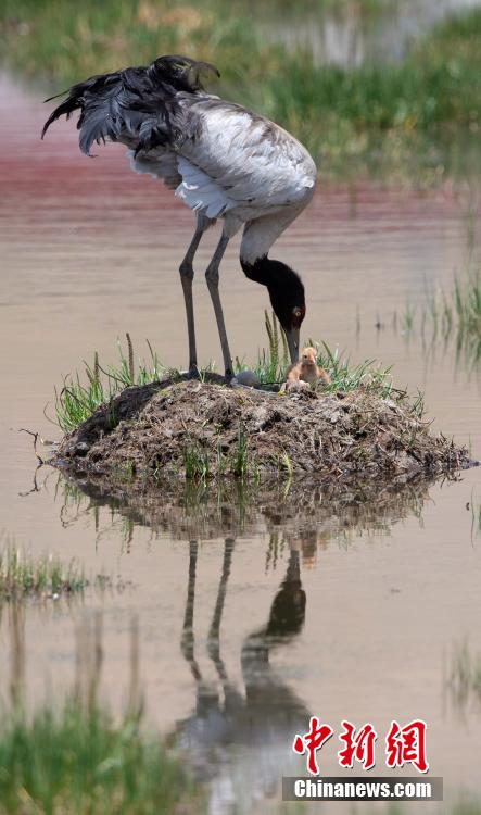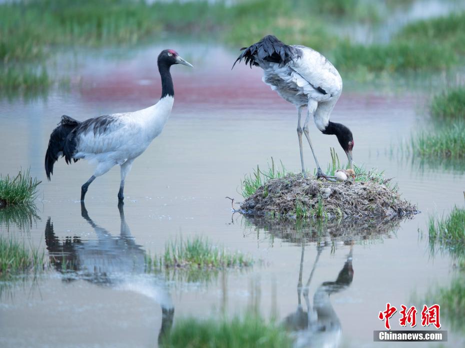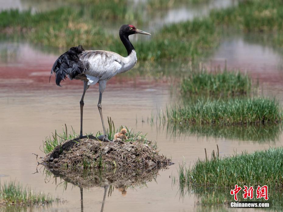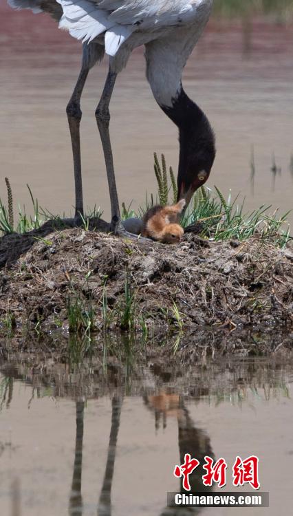 6月16日,在海拔4700米的西藏那曲市申扎縣,經(jīng)過34天的漫長孵化期,一對黑頸鶴夫婦終于等來了自己的小黑頸鶴成功破殼出生。值得一提的是,黑頸鶴寶寶的誕生日也是2024年的父親節(jié),黑頸鶴父親在節(jié)日當天喜獲最珍貴的禮物。據(jù)悉,黑頸鶴每窩通常產(chǎn)卵1-2枚,孵化期通常要33到35天。中新社記者 貢嘎來松 攝