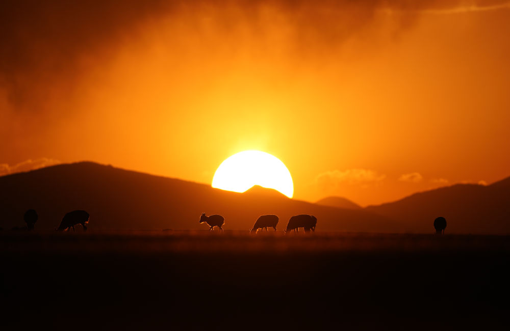 這是2024年6月16日在西藏那曲市申扎縣買巴鄉(xiāng)魯確塘草原上拍攝的夕陽下的母藏羚羊。