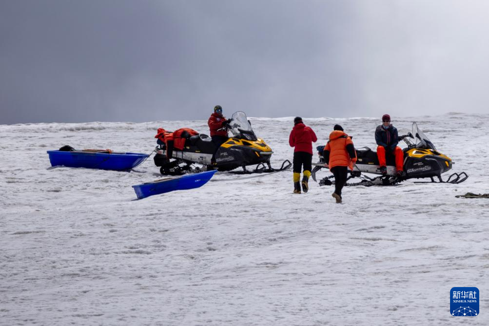 科考隊(duì)員準(zhǔn)備搭乘雪地摩托前往冰原深處作業(yè)(9月4日攝)。新華社記者 姜帆 攝