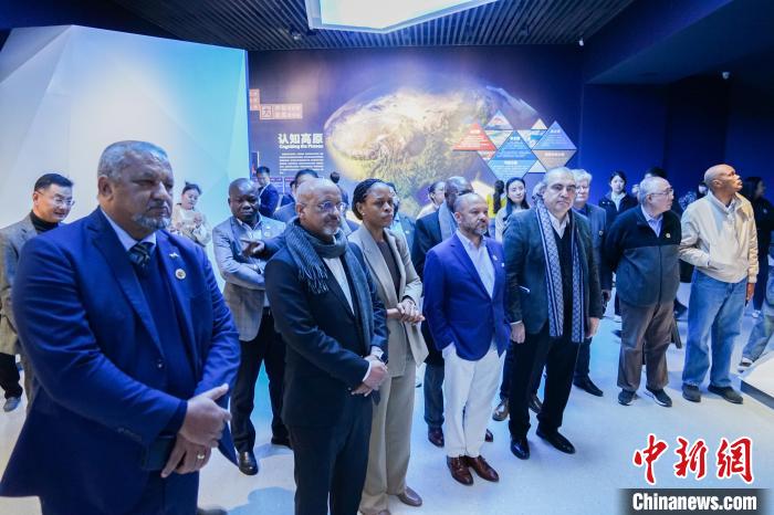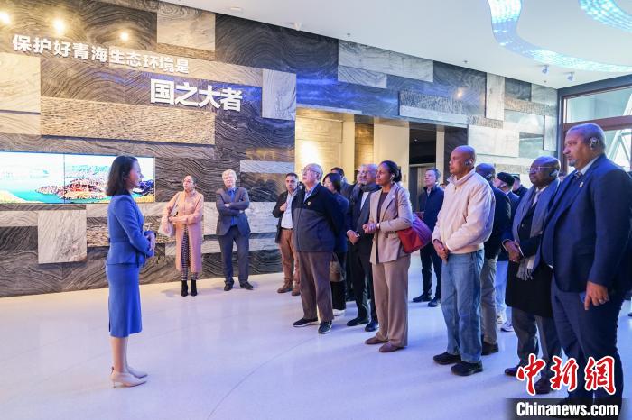 圖為代表團一行在青海省自然資源博物館內(nèi)參觀。中新社記者 馬銘言 攝