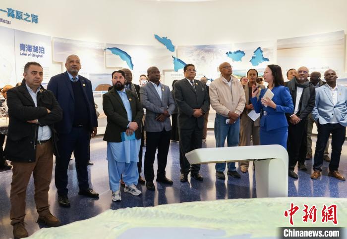 圖為代表團一行在青海省自然資源博物館內(nèi)了解青海湖泊。中新社記者 馬銘言 攝