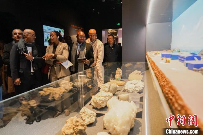 圖為代表團一行在青海省自然資源博物館內(nèi)了解青海省礦物資源。中新社記者 馬銘言 攝